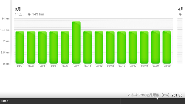 去年の今頃はよく家の近くの刀水橋でジョギングしてました。雨の日も風の日も花粉の日もだいたい毎回10kmほどのペースをキープして。今は休みの日しか時間とれないが家の近くのトレーニングジムで走ってます、やっぱりランニングマシーンは実際のジョギングより負荷が軽いような気がします。それでも10kmをノルマに毎回走ります。