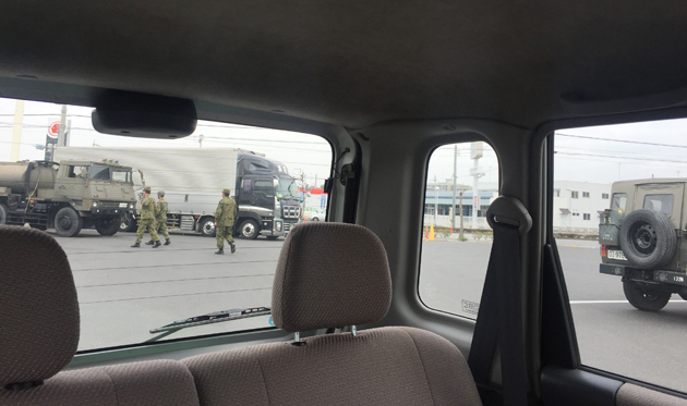 朝通勤時にコンビニで朝食買ってたら自衛隊に出くわしました。間近で見るのがあんまりないので少しテンション上がりつい写真を撮っちゃいました。カッコいいですね~。