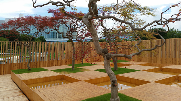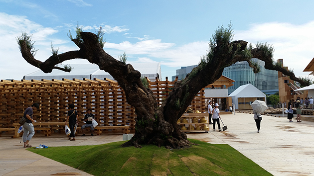 樹齢1200年のオリーブであったり、隈氏とコラボした水辺等です。