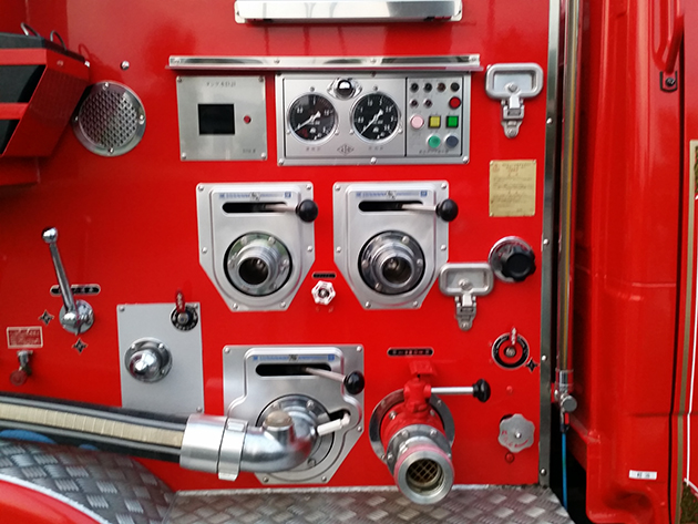 車両の両側面にあるスイッチやレバーを動かして水を送ります。