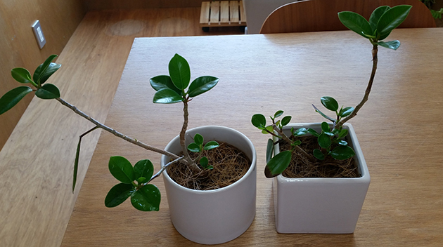 普通のガジュマルと比べて肉厚で丸い葉っぱのパンダガジュマルさん。