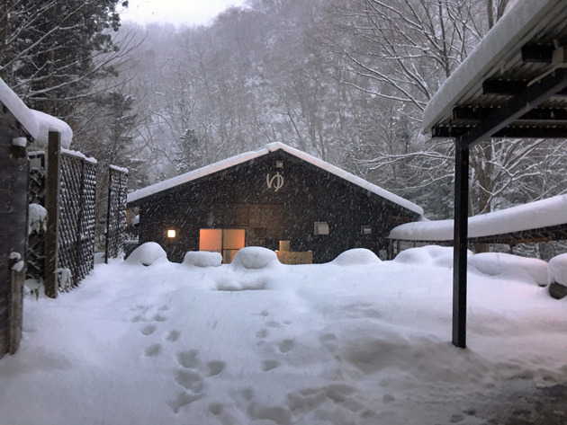 2日目には早朝から勢いよく降り出した雪で、冬の露天風呂を満喫できました