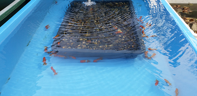 今年は例年よりも寒い日が続いたり雪が降ったり大変な冬でしたが、積雪を乗り越え、氷の下でじっとしていた金魚達は思っていた以上に元気いっぱいでした。