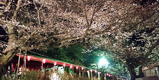 週末の昼だとワイワイガヤガヤごちゃごちゃしているので夜桜です。