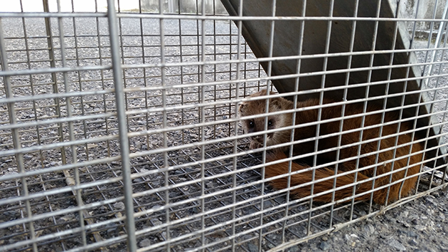 町役場に捕獲器を借りて仕掛けたところ、みごとにかかりました。