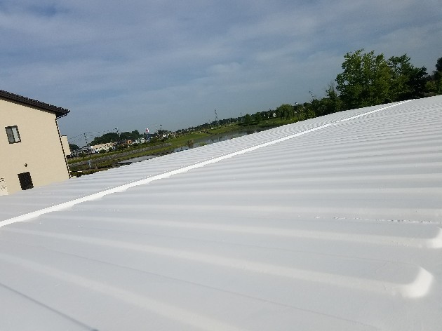 本日は事務所屋根の塗装。梅雨に入る前に熊監督指示の元、総出で。