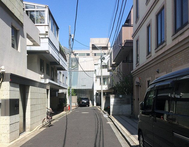 写真はたまたま出会えた妹島さん設計の「スモールハウス」です。(突き当たりの建築)