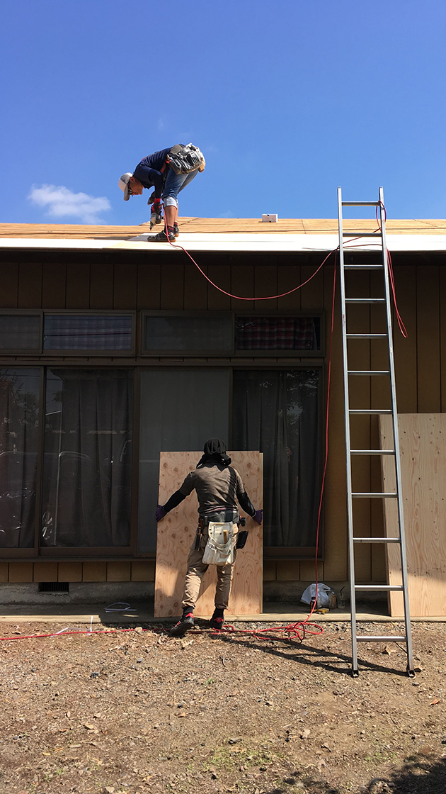 屋根葺きまでは終わらして7月中旬の外壁内部解体に向けて密々と進めます。