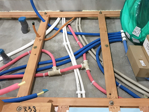 ただ現場で職人さん達と打合せし、床の高さをキープしながら配管できる施工方法へと変更。