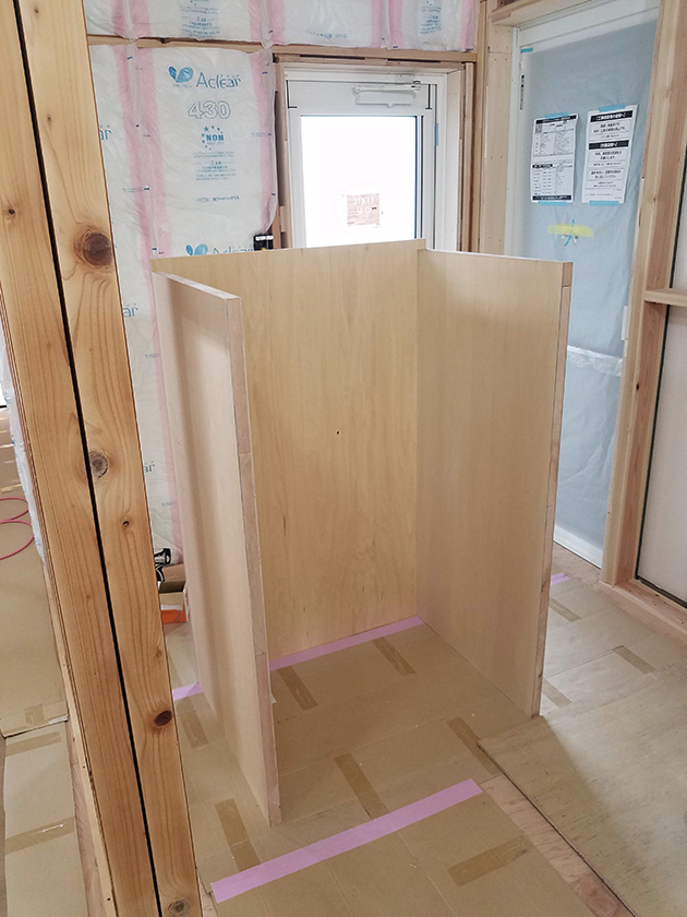 熊澤監督が現場で作ってくれました。自分は補助。写真の箱は洗面室用で、これより大きいのを納戸用に2つ。