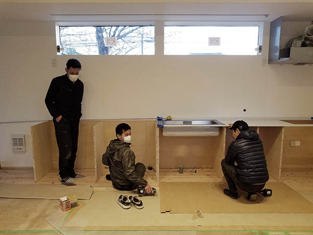 特注したステンレス天板も届いたので熊監督指導の下製作に。