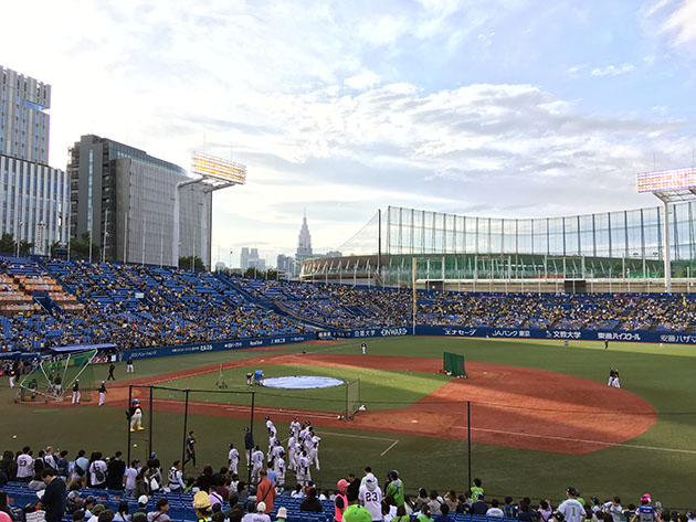 神宮球場からもスタンド越しに新国立競技場が拝められます。