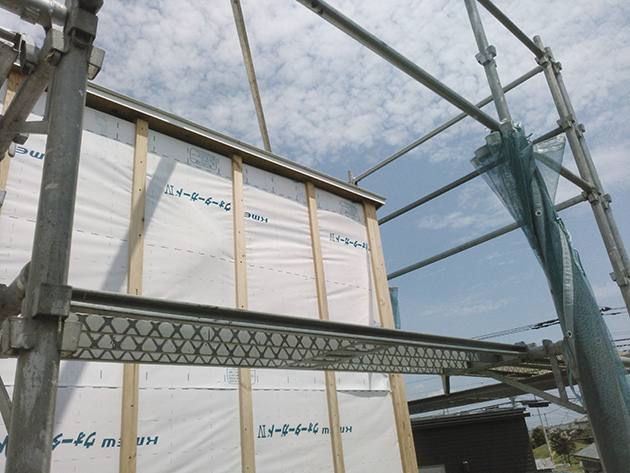 外壁始まるので板金納まりなどはタカさんに頼み、自分は電気関係の打合せを。