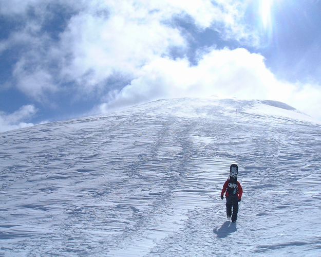 山頂まで登って、いい景色見て、最高級の雪を滑ります