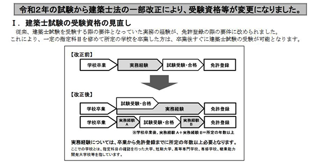 今までは、実務経験ののち受験でしたが、学校卒業と同時に受験が可能に。