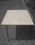 ちょうど仕事でニスがあっまたので、昼休みを利用して打ち合わせ用テーブルを塗装することに。