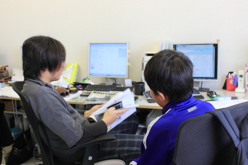 午後は実際に計画中の、東京のマンションをリノベーションするプロジェクトのプランを考えてもらいました。途中休憩しながらマサルからインテリアデザイン、エイジから建築材料やデザインの話をしてもらいました。