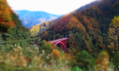 途中トイレ休憩でよった場所から見えた橋をミニチュア風にパシャリ。